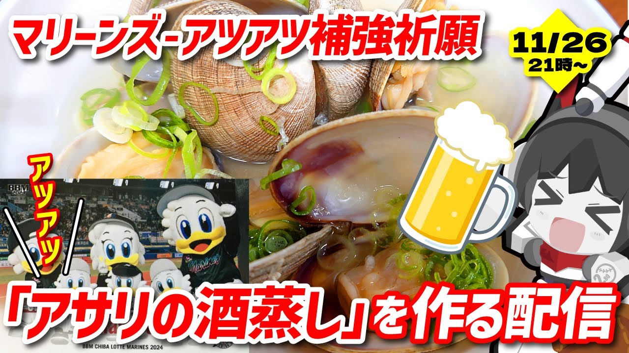 【ロッテアツアツ補強祈願】千葉ロッテマリーンズのアツアツ補強を祈願し、アツアツのアサリの酒蒸しを作る配信!