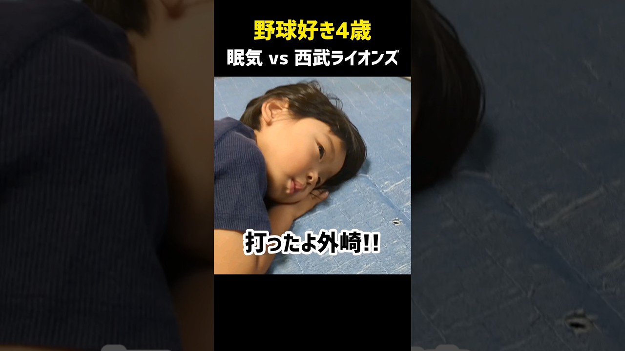 眠いのをこらえながら野球(西武ライオンズ戦)を見る4歳の末っ子くん。