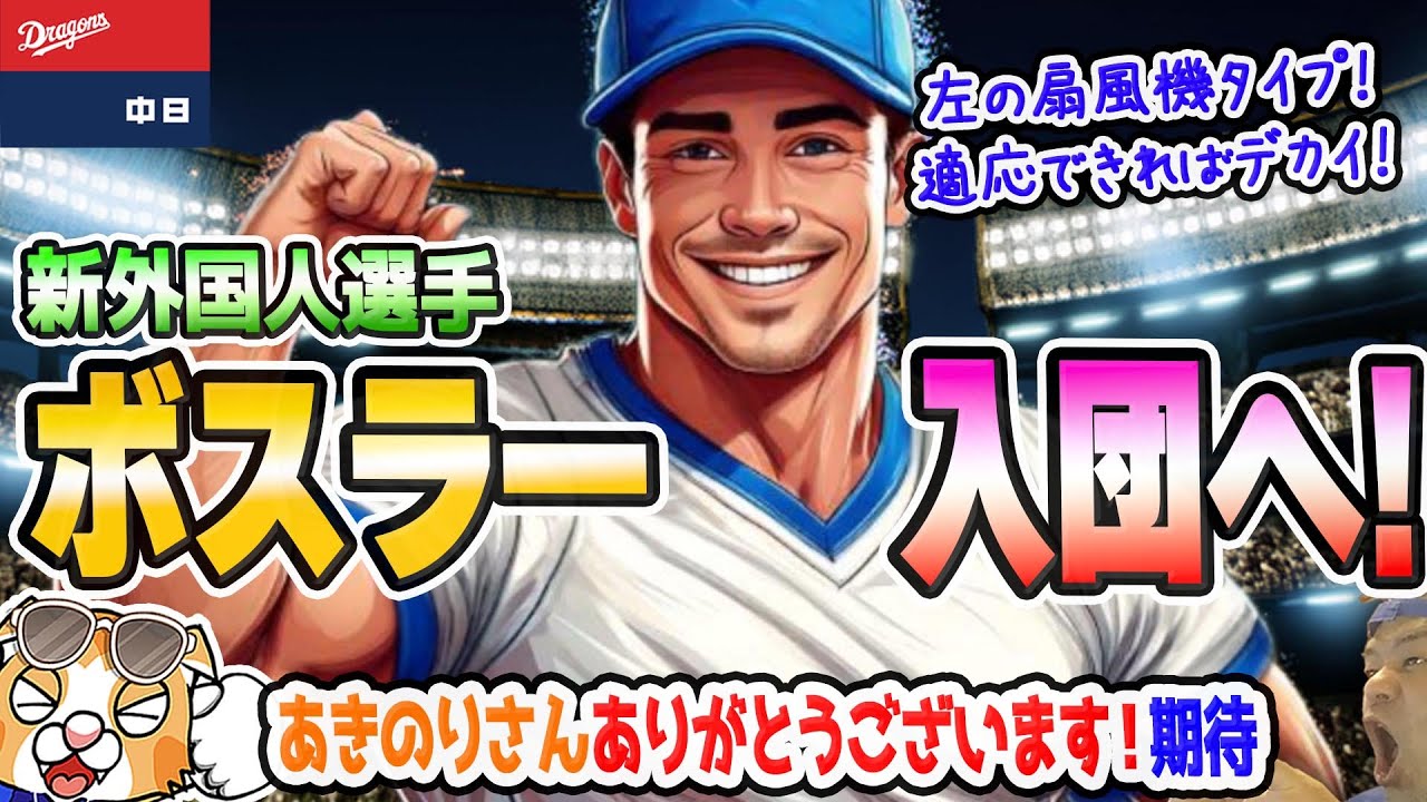 【中日ドラゴンズ】新外国人ボ・ボ・ボーボ・ボスラーと合意!左の長打はまかせろ!なんなら一三塁もまかせた!【ライブ】