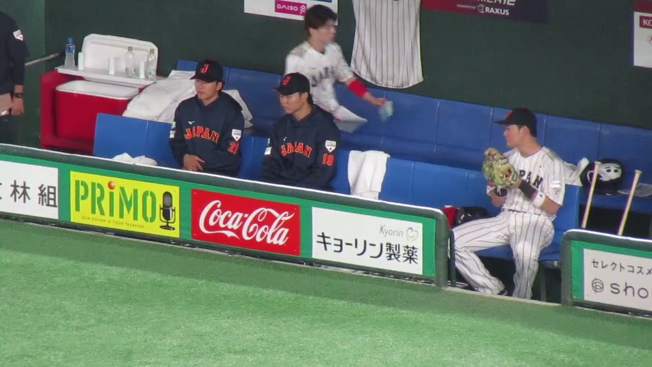 出番終わった髙橋宏斗 早川隆久とベンチで会話中(2024年11月21日 プレミア12日本 対 アメリカ ) Tohoku Rakuten Golden Eagles早川隆久東北楽天ゴールデンイーグルス NPBHUB.COM | The Fanbase of Nippon Baseball & Nippon Professional Baseball