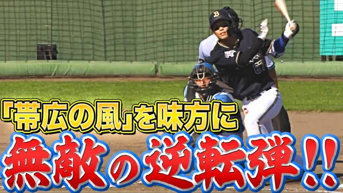 低めのボールを捉え、オリックス・中川圭太が左中間スタンドに逆転2ラン!! 昨日入らなかったリベンジとなる一発。帯広では風を味方につけ、しっかりとスタンドまで運んだ!!