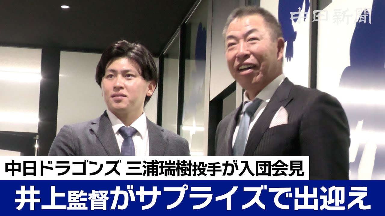 中日が育成選手として契約した前ソフトバンクの三浦瑞樹投手(25)が3日、名古屋市内の球団事務所で契約と入団会見を行った。年俸は500万円(金額は推定)。会見前には井上一樹監督がサプライズで出迎え、固い握手を交わしていた。