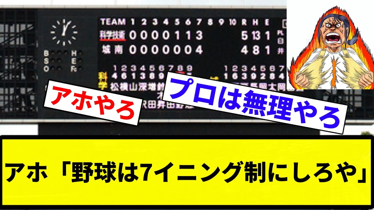 【今更無理や】アホ「野球は7イニング制にしろや」←これ【プロ野球反応集】【プロ野球反応集】