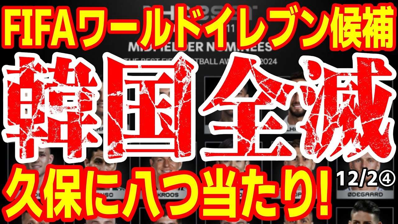 「選定が理解し難い!」韓国紙がFIFAワールドⅪにブチギレて久保に八つ当たり!韓国民の反応は? 24/11/30報道【ニュース・スレまとめ・海外の反応・韓国の反応】サッカー