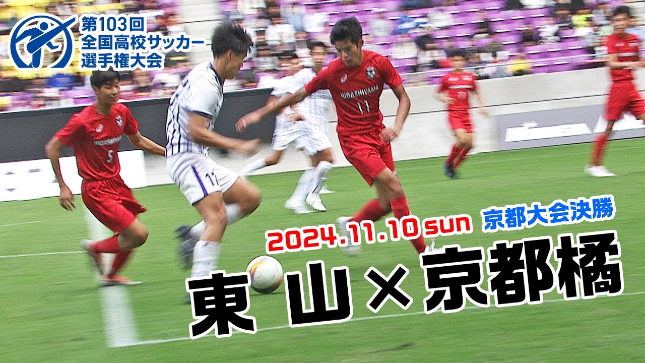 70校67チームが出場した今大会もいよいよ大詰め。決勝へと勝ち進んだのは、新人戦・IH予選に続く京都3冠を狙う「東山高校」と2年連続全国大会出場を目指す「京都橘高校」の2校。3年連続、同じ対戦カードとなる京都大会決勝。両校の直近5年間での優勝回数は東山が2回、京都橘が3回と京都の高校サッカーを牽引する両チームが激突します!互いのプライドをかけた大一番、夢舞台への切符を掴みとるのは!?