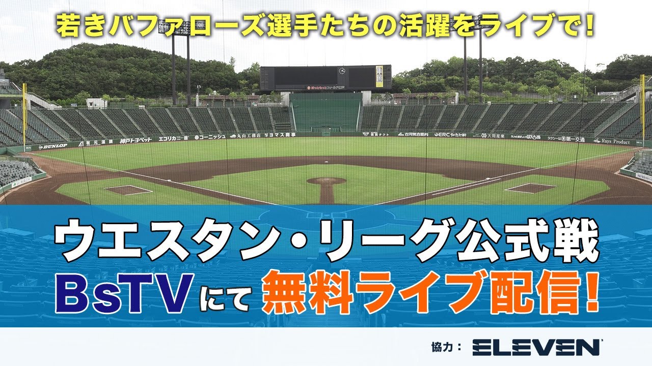 杉本商事バファローズスタジアム舞洲で行われるウエスタン・リーグ公式戦を、イレブンスポーツ協力のもと、球団公式YouTubeチャンネル「BsTV」にてライブ配信いたします!この試合は試合終了まで配信いたします。