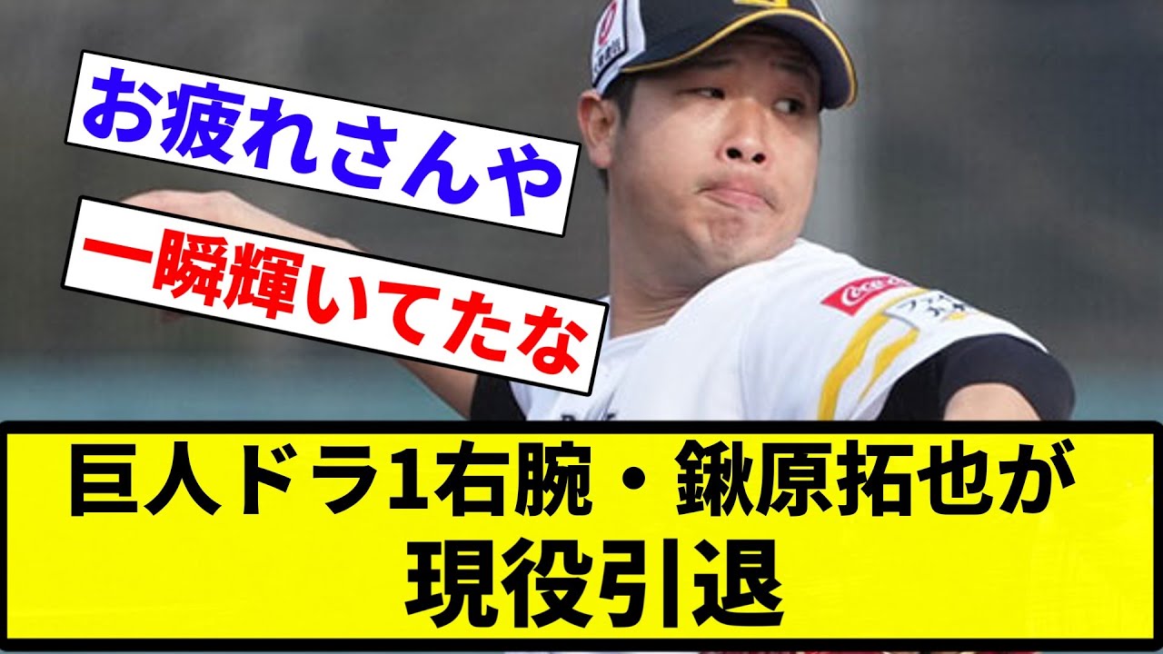 【おつかれさまでした】巨人ドラ1右腕・鍬原拓也が現役引退【プロ野球反応集】【プロ野球反応集】