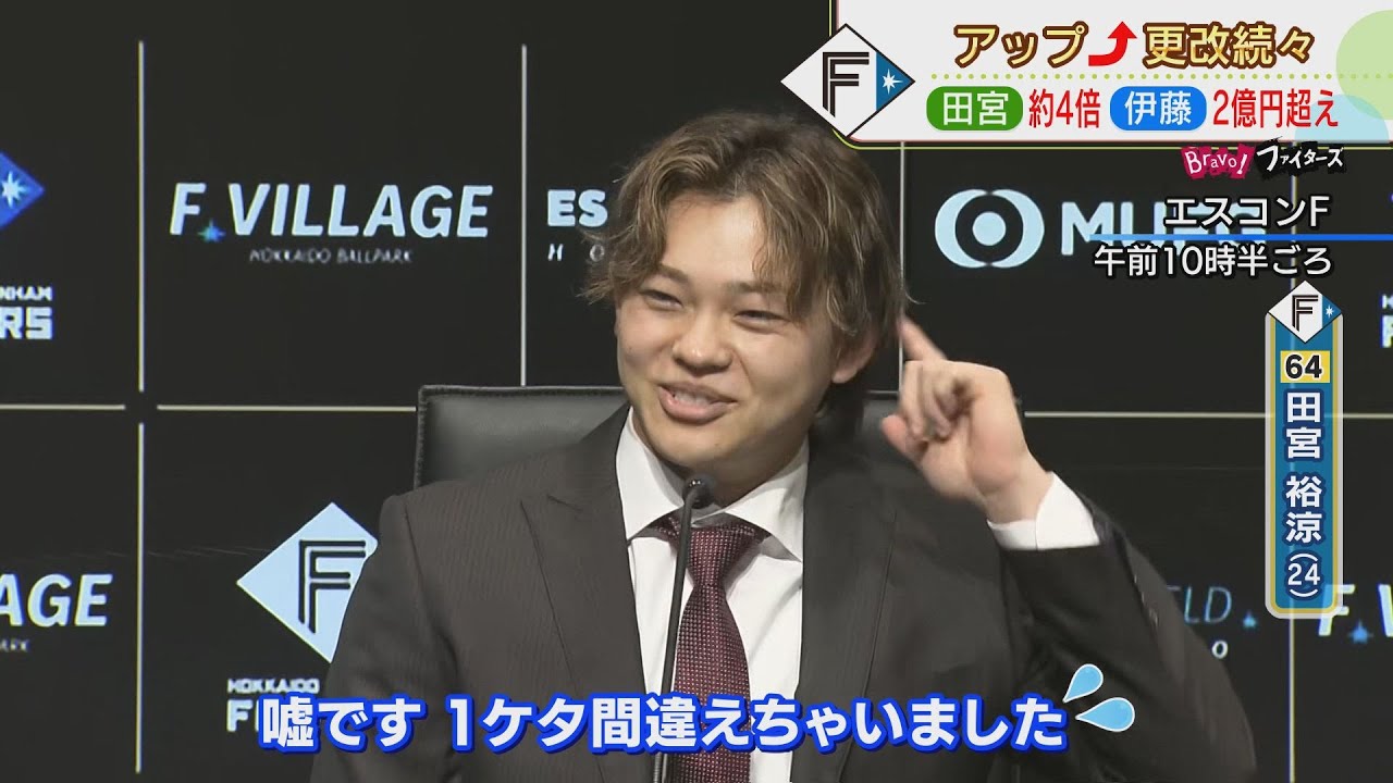 【ファイターズ】約4倍増の田宮裕涼選手はおとぼけも… 最多勝 最高勝率の伊藤大海投手は倍増で日本一への決意