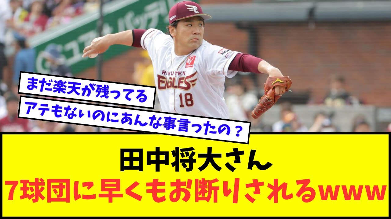 【悲報】田中将大さん、11球団中7球団に早くもお断りされるwwwww【なんJ反応】【2chスレ】【5chスレ】【プロ野球反応集】