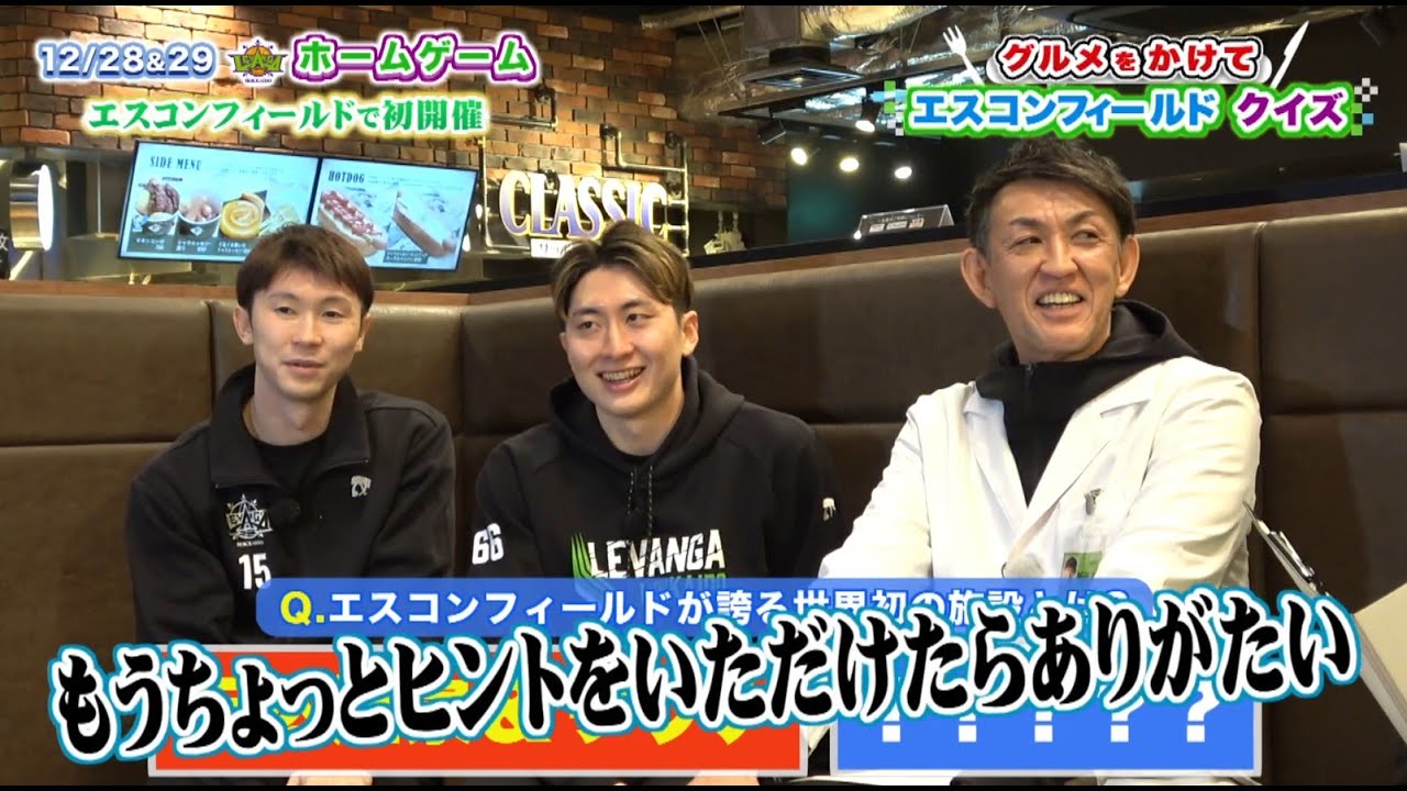 出張inエスコンフィールド第2弾!ファイターズ球団職員の谷口雄也さんが”野球好き”松下選手&島谷選手&ドクターをエスコート。グルメスポットを訪れると、折茂家の知られざる新事実が発覚!?さらに、大人気の肉料理をかけてクイズバトルがスタート!