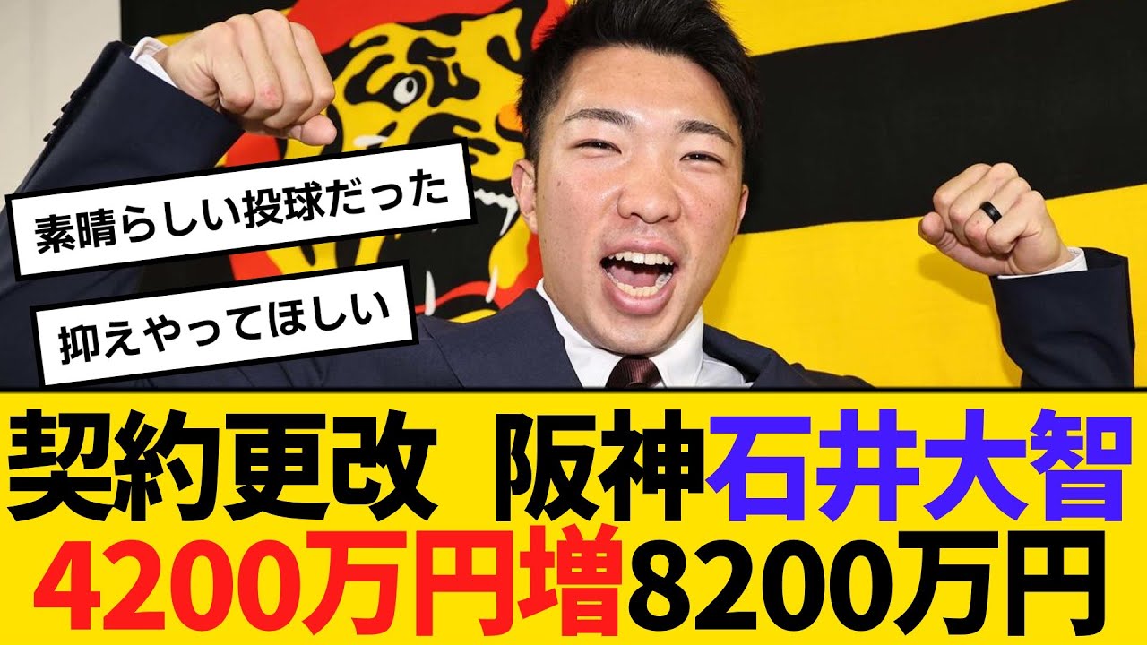 阪神・石井大智が4200万円増の8200万円で更改 第1子誕生も報告「おむつとミルク代の足しにできたらいい」 【ネットの反応】【反応集】