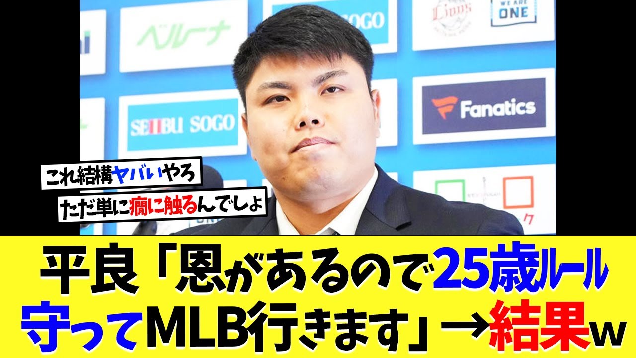 平良海馬「球団にも恩があるので25歳ルール守ってメジャー行きます」→結果www【プロ野球】【野球】【なんj】【なんj】【5ch】【2ch】【甲子園】【MLB】