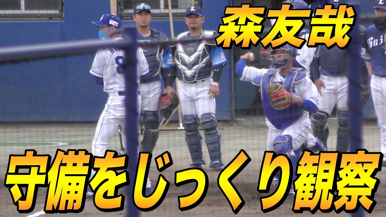 森友哉が中日ドラゴンズ捕手陣の守備練習をじっくり見る【西武ライオンズ 2021年 プロ野球 オープン戦】