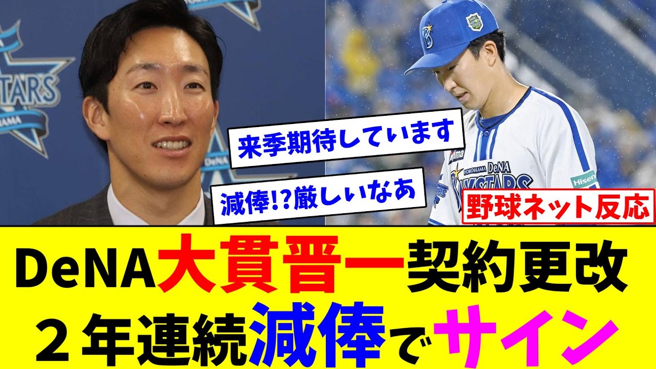 DeNA大貫晋一契約更改、2年連続減俸でサイン【ネット反応集】