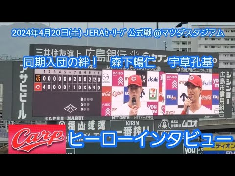 20240420【現地】同期入団の2人!森下暢仁と宇草孔基のヒーローインタビュー 広島東洋カープ勝利試合後@MAZDA Zoom-Zoom スタジアム広島・ビジターパフォーマンス