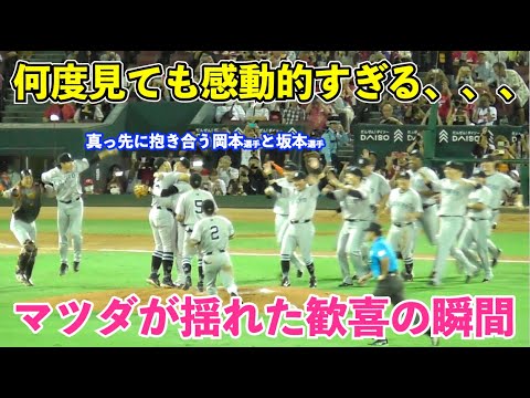 岡本選手と坂本選手が真っ先に抱き合うシーンは何度見ても感動すぎる、、、マツダが揺れまくった全16安打のスコアプレーをプレイバック!