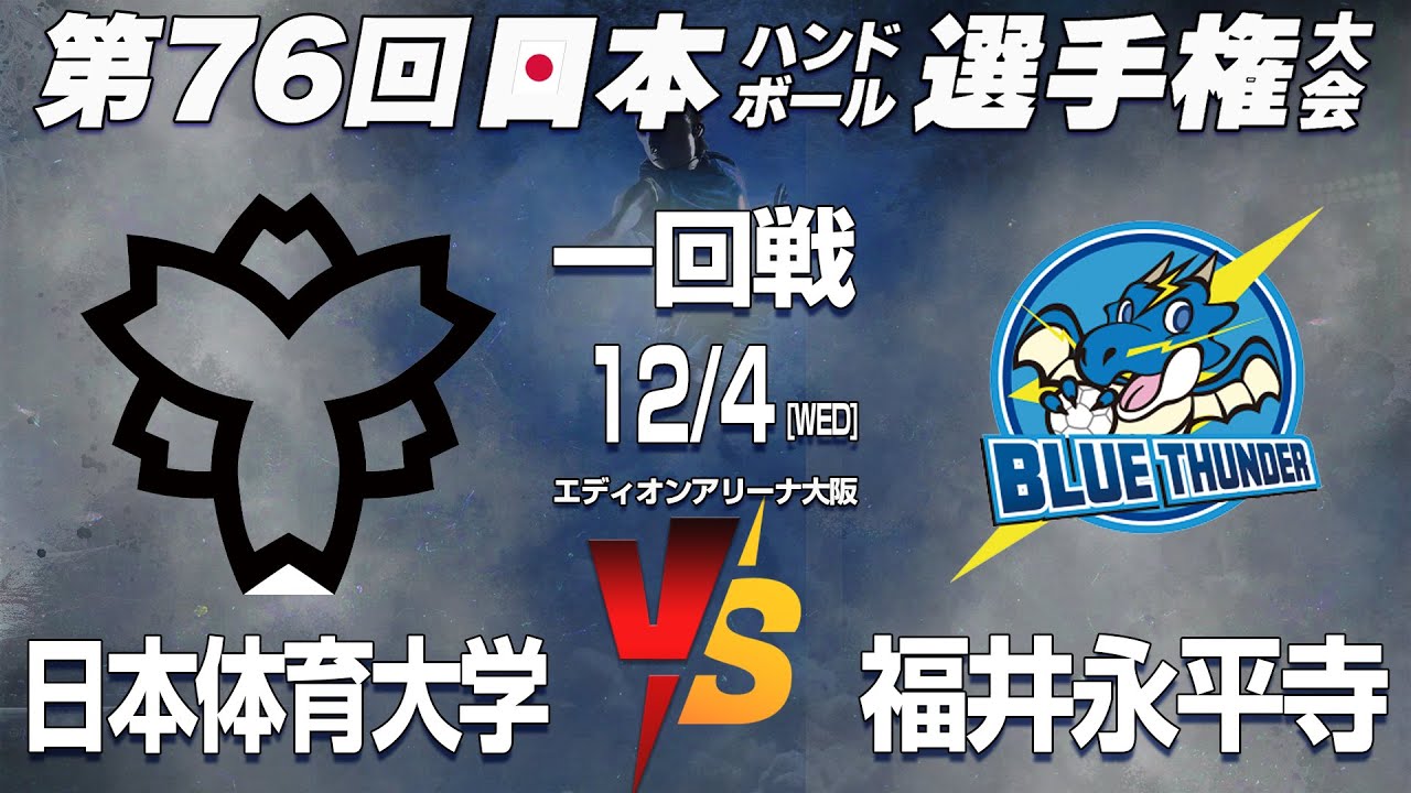 【日体大 x 福井永平寺】第76回日本ハンドボール選手権大会 男子の部