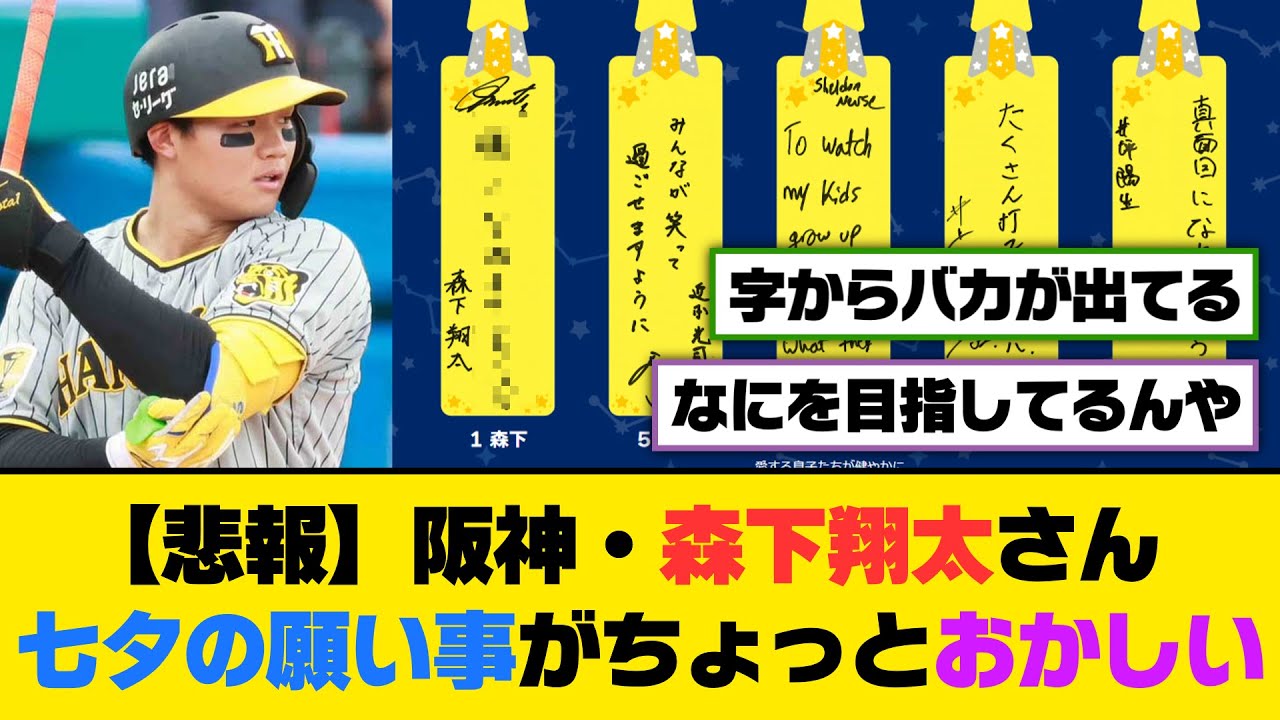 【悲報】阪神・森下翔太さん、七夕の願い事がちょっとおかしい【5ch/2ch】【なんj/なんg】【反応集】 #なんj #反応集 #野球 当チャンネルではなんjやおんjなどのスレッドを紹介しています! 音楽:BGMer VOICEVOX:ずんだもん,四国めたん,春日部つむぎ,波音リツ,冥鳴ひまり,雨晴はう,玄野武宏,白上虎太郎,青山龍星 2ch2ch反応集2ch面白いスレ5ch5ch反応集5ch面白いスレHanshin TigersなんJなんj民遠藤成野球阪神タイガース NPBHUB.COM | The Fanbase of Nippon Baseball & Nippon Professional Baseball