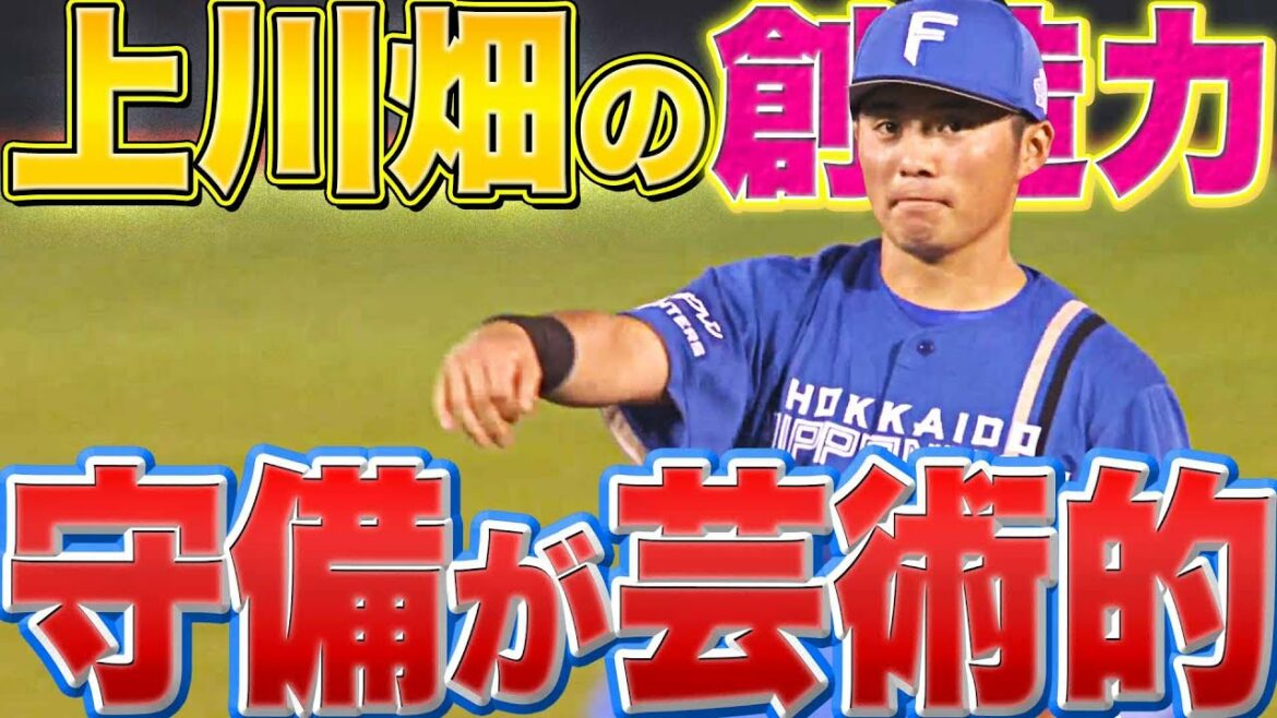 難しい打球をなんでもなかったかのように処理。そしてやや遠めでも自ら2塁に入って併殺を完成させるとっさの判断力。北海道日本ハム・上川畑大悟が創造力・想像力を駆使して自由自在に守る、型にハマらない守備はもはや芸術的。