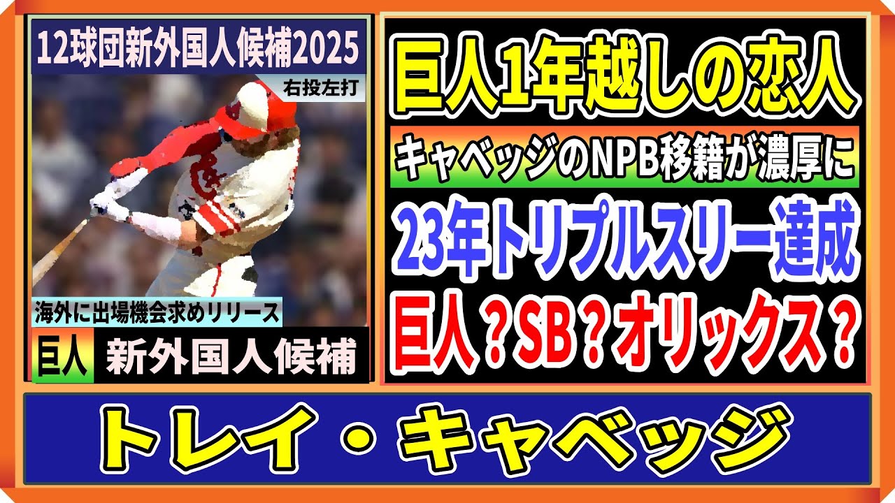 巨人ついに獲得か?トレイ・キャベッジ外野手が日本移籍の可能性を示唆!マイナー通算109発の長距離砲「巨人vsオリックス」1年越しの恋人獲りへラウンド2