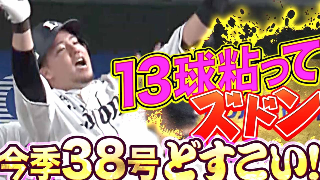 緩急で攻められながらも、粘りに粘って迎えた13球目。低めのボールを力強く振り抜いた打球がレフトスタンドへ一直線!! 我慢に我慢を重ね、打てる球を待ち続けた埼玉西武・山川穂高。これぞ主砲の働き、38号ホームランで続いた!!