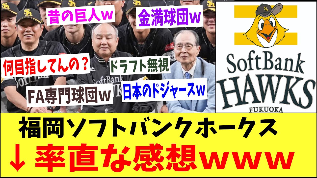 福岡ソフトバンクホークス→このチームの率直な感想wwww「昔の巨人w」「日本のドジャースw」「横取り金持ちw」