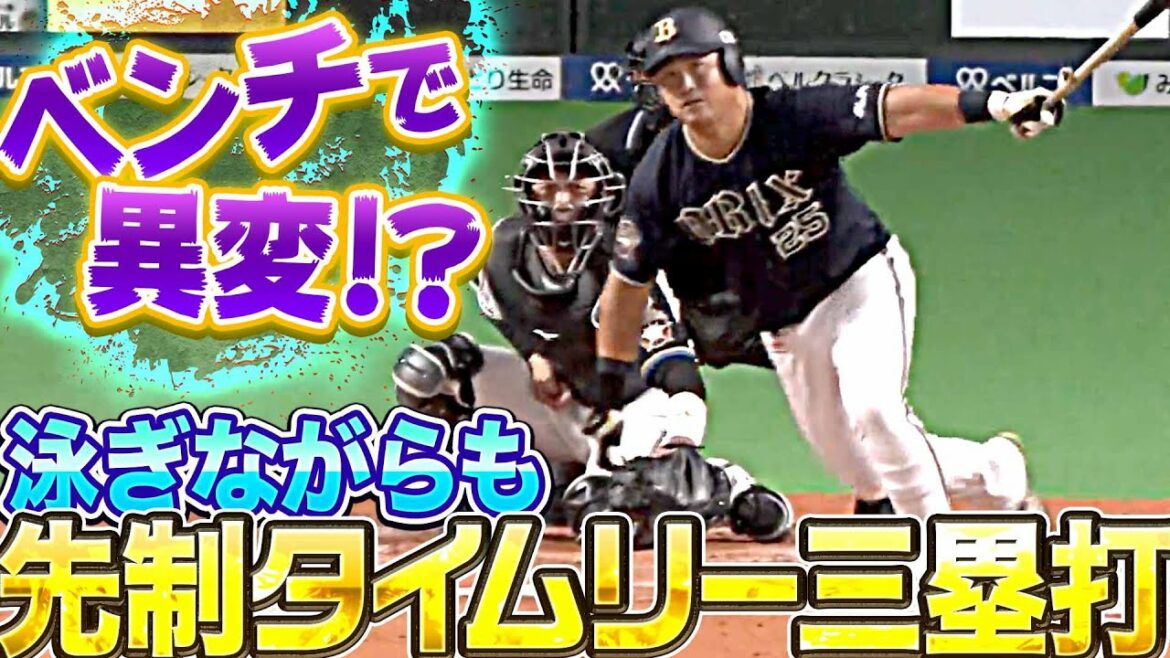 低めに沈むボールをバットの先にうまく乗せ、打球は左中間を割っていく。オリックス・西村凌が安達さんを壊してしまうほどの巧打のタイムリー3ベースヒットを放ち、先制に成功した!!