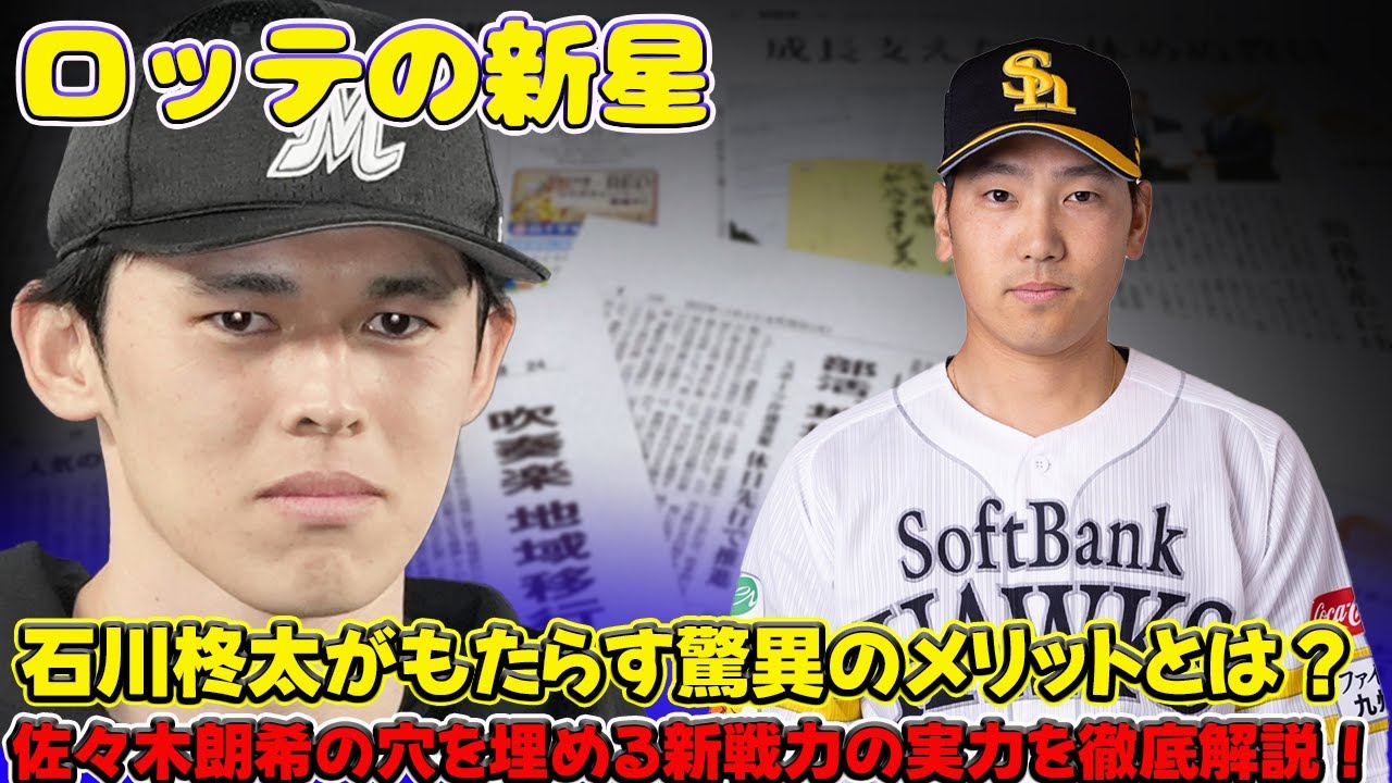 説明: 今回の動画では、佐々木朗希選手のメジャー挑戦に伴うロッテの新たな戦力、石川柊太選手の加入について詳しく解説します。石川選手はソフトバンクからFAで移籍し、過去の実績やZOZOマリンでの圧倒的な成績を持つ右腕です。佐々木選手のコンディション不良がチームに与えていた影響を振り返り、石川選手がどのようにローテーションを安定させ、優勝争いに貢献できるのかを考察します。ロッテの来季の展望や、石川選手のプレースタイルについても触れ、ファン必見の内容です。ぜひご覧ください!”
