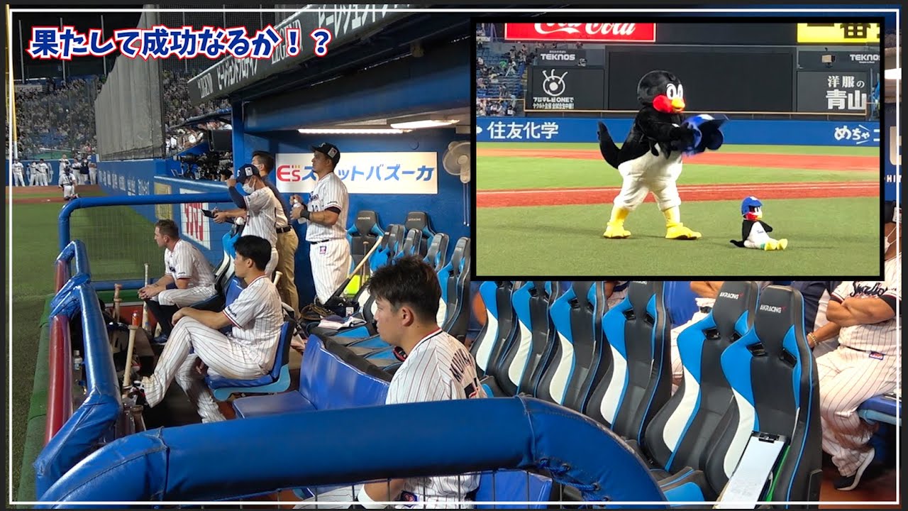 Tokyo-Yakult-Swallows: 今日はベンチの様子もお届け!つば九郎空中くるりんぱ | 2022年9月9日広島戦(神宮球場)