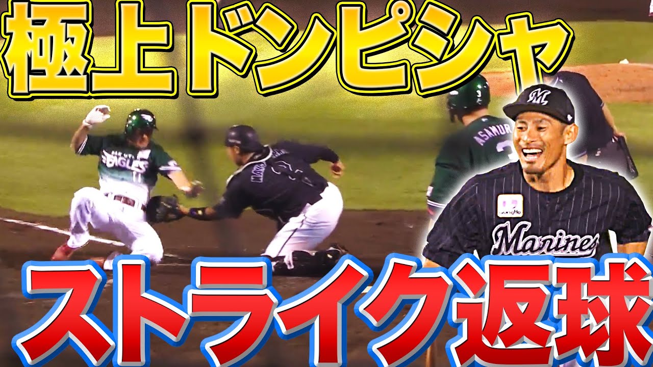 千葉ロッテ・荻野貴司が失点を阻止するドンピシャのストライク返球でチームを救いました!!