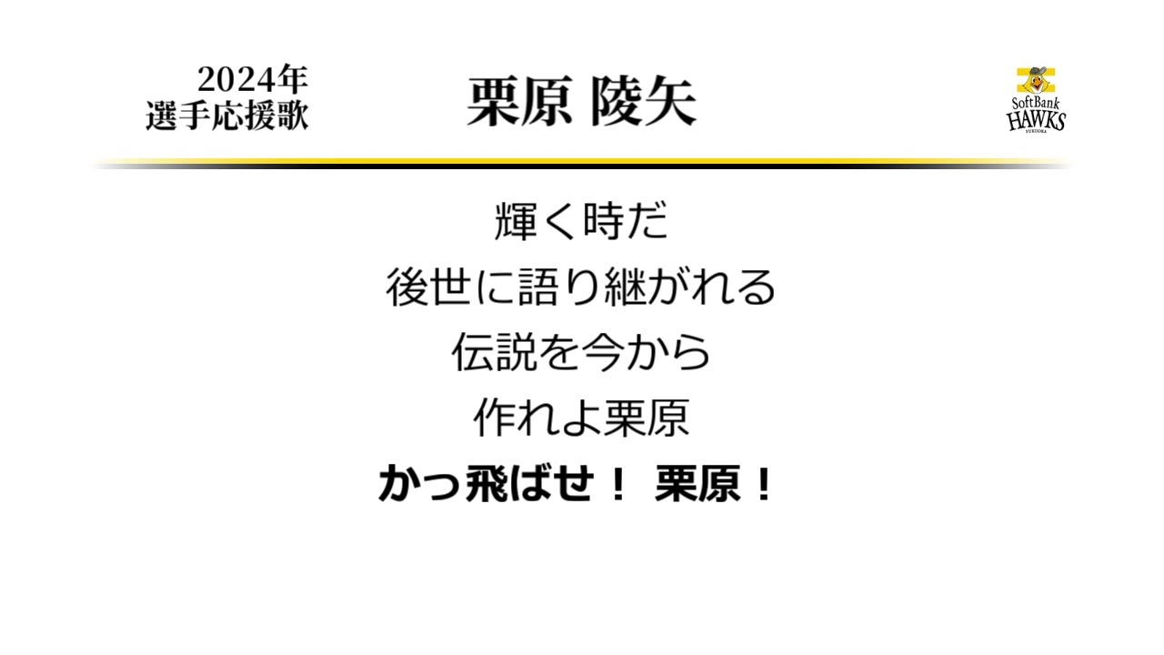 ○栗原応援歌(ソフトバンク1作目)→https://youtu.be/piVqI9enzP0