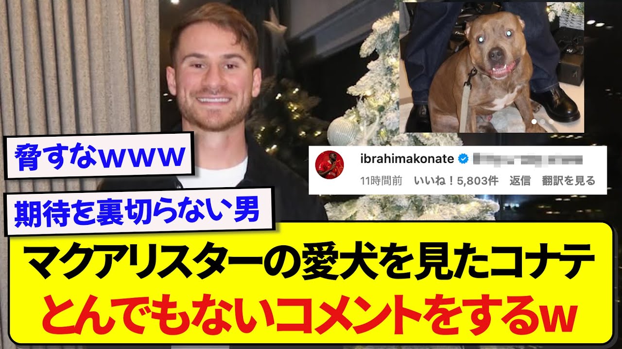 【策士】マクアリスターの可愛いわんこを見たコナテ、思わず放った一言が現地サポに称賛されるwwww
