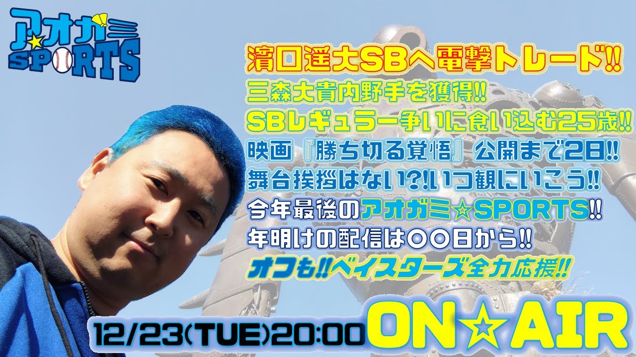 濱口遥大電撃トレード!!SB三森大貴獲得!!映画公開まであと2日!!今日の配信が今年ラストです!!【12/23】アオガミ☆SPORTS~ベイスターズ応援番組~