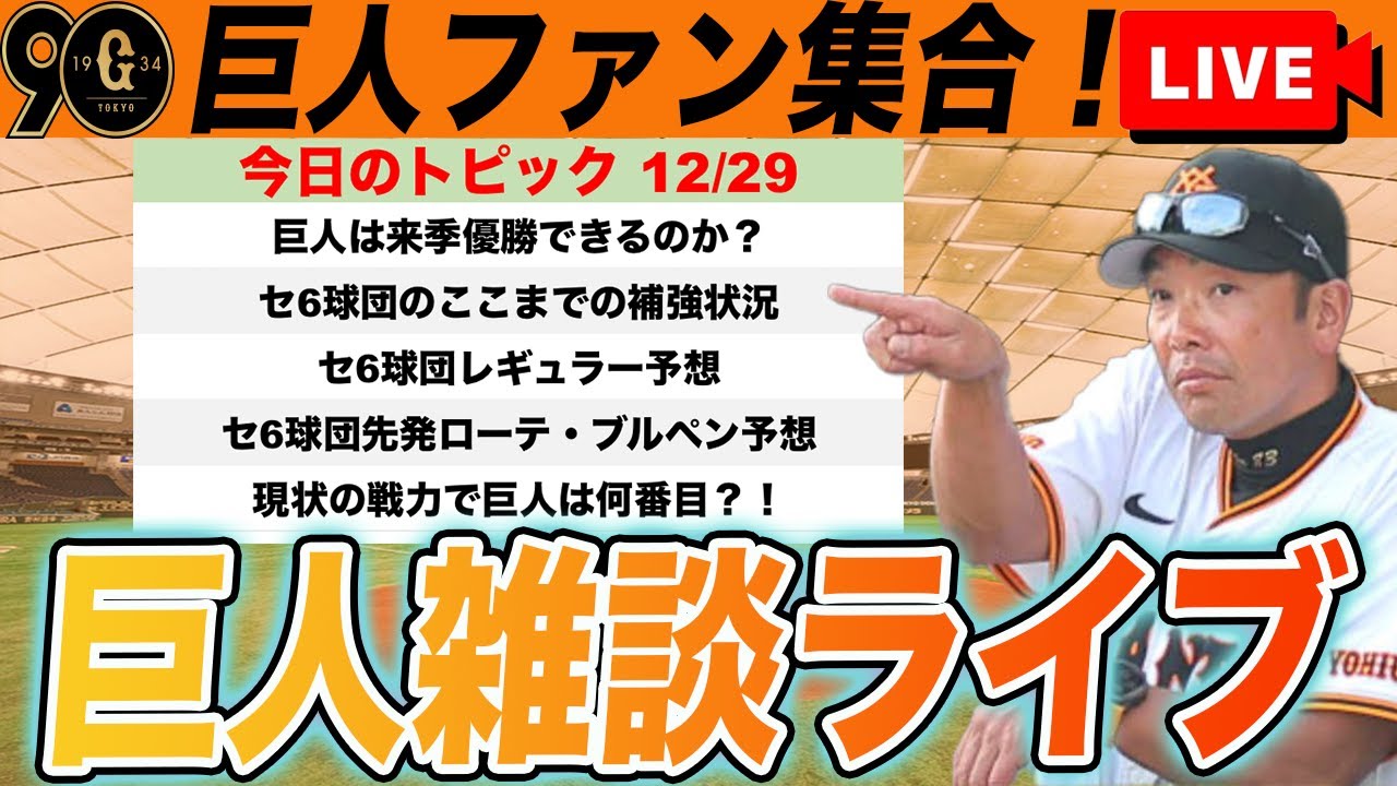 【巨人ファン集合】来季巨人は優勝出来るのか?!セリーグ6球団戦力分析!スタメン・先発ローテ・ブルペン予想など雑談ライブ 読売ジャイアンツ