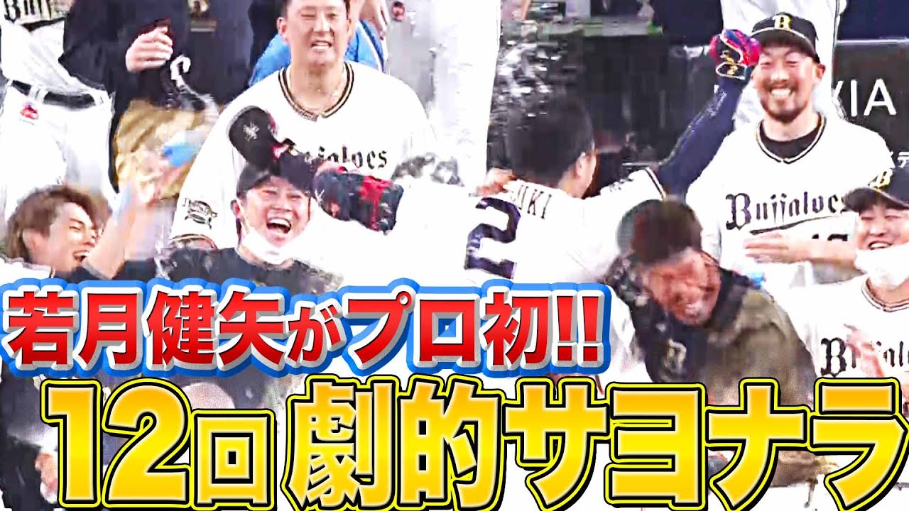 決めた…決めてくれた!! オリックス・若月健矢が12回裏にサヨナラタイムリー2ベースヒット!! ここを落としていればマジックが10となっていただけに、ホークスを追ううえでも大きな大きな1勝!! お立ち台では「いつもは代打を出される立場…」というような発言をしていたが、代打で登場し、自らプロ初となるサヨナラ打で勝負を決めた!!