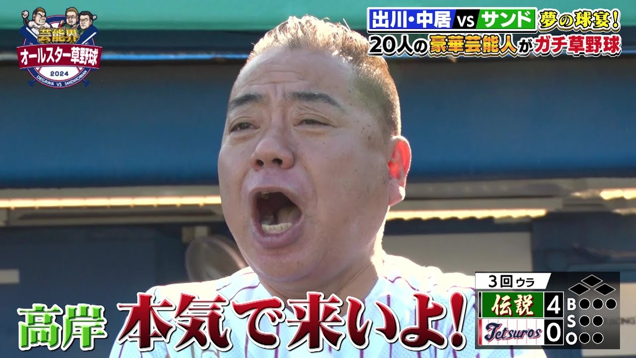 出川哲朗「本気で来いよ!」済美高野球部出身のティモンディ高岸が登板!|芸能界オールスター草野球2024