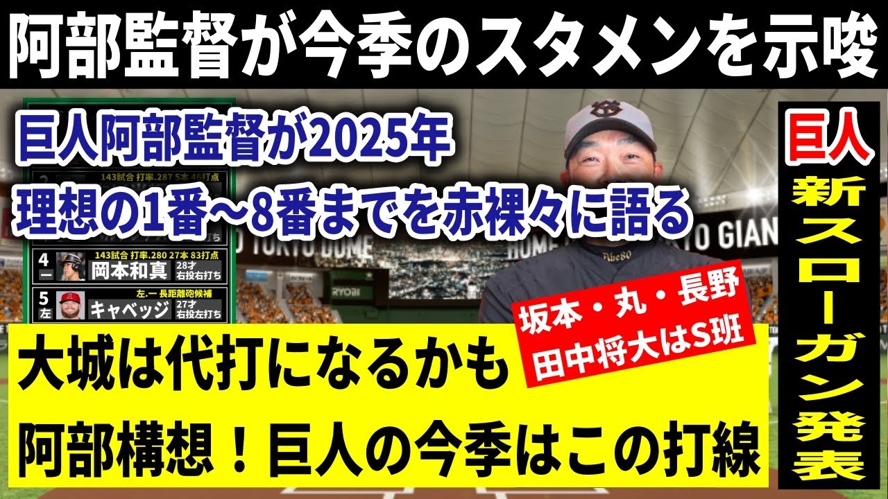 巨人阿部監督が今季のスターティングメンバー、理想の1番から8番までを語り、捕手の起用方法にも踏み込んだ。阿部監督が語る、ジャイアンツの2025日本一奪回打線とは?