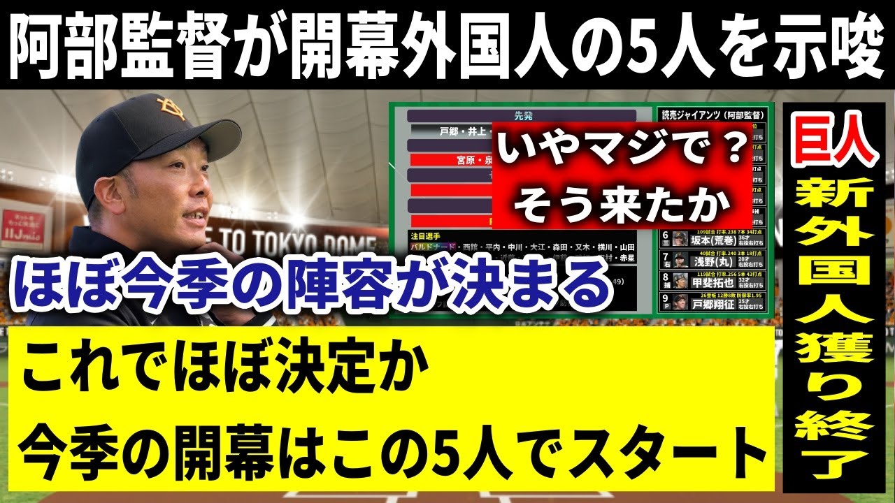 巨人阿部監督が今季外国人の起用法について現段階での理想を示唆した。これで事実上の助っ人たちが争う1軍登録の5枠が決定か…