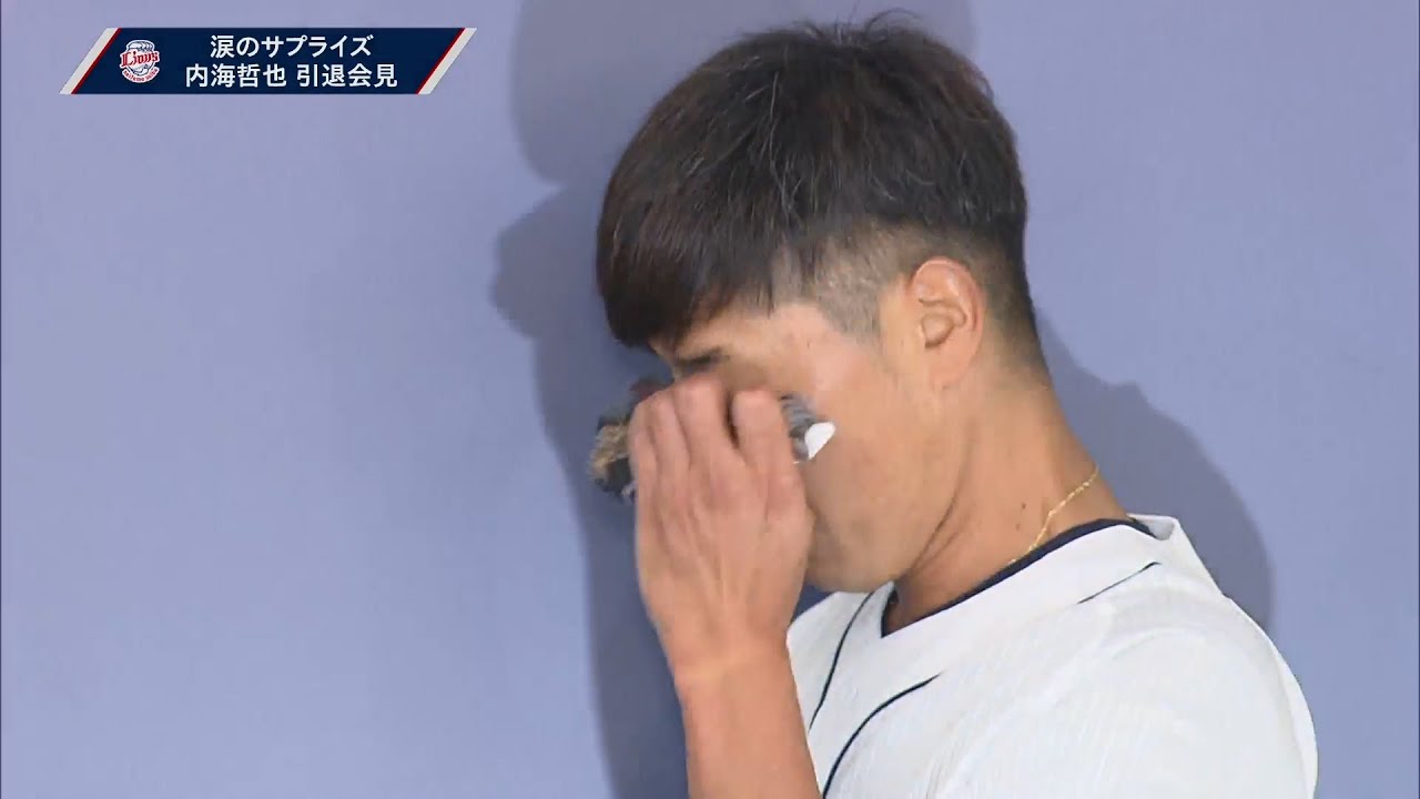 愛弟子・渡邉勇太朗から小さな手紙のサプライズ。引退会見中、内海哲也はこらえきれずに涙した…。