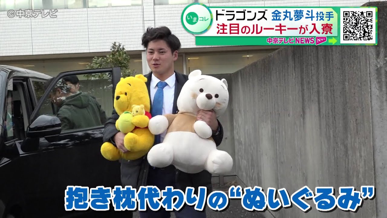 ドラフトで4球団が競合した注目のルーキー、金丸夢斗投手も8日午後に合宿所へ。抱き枕が欠かせないという金丸投手は、抱き枕がわりのぬいぐるみ2つを抱えての入寮となりました。