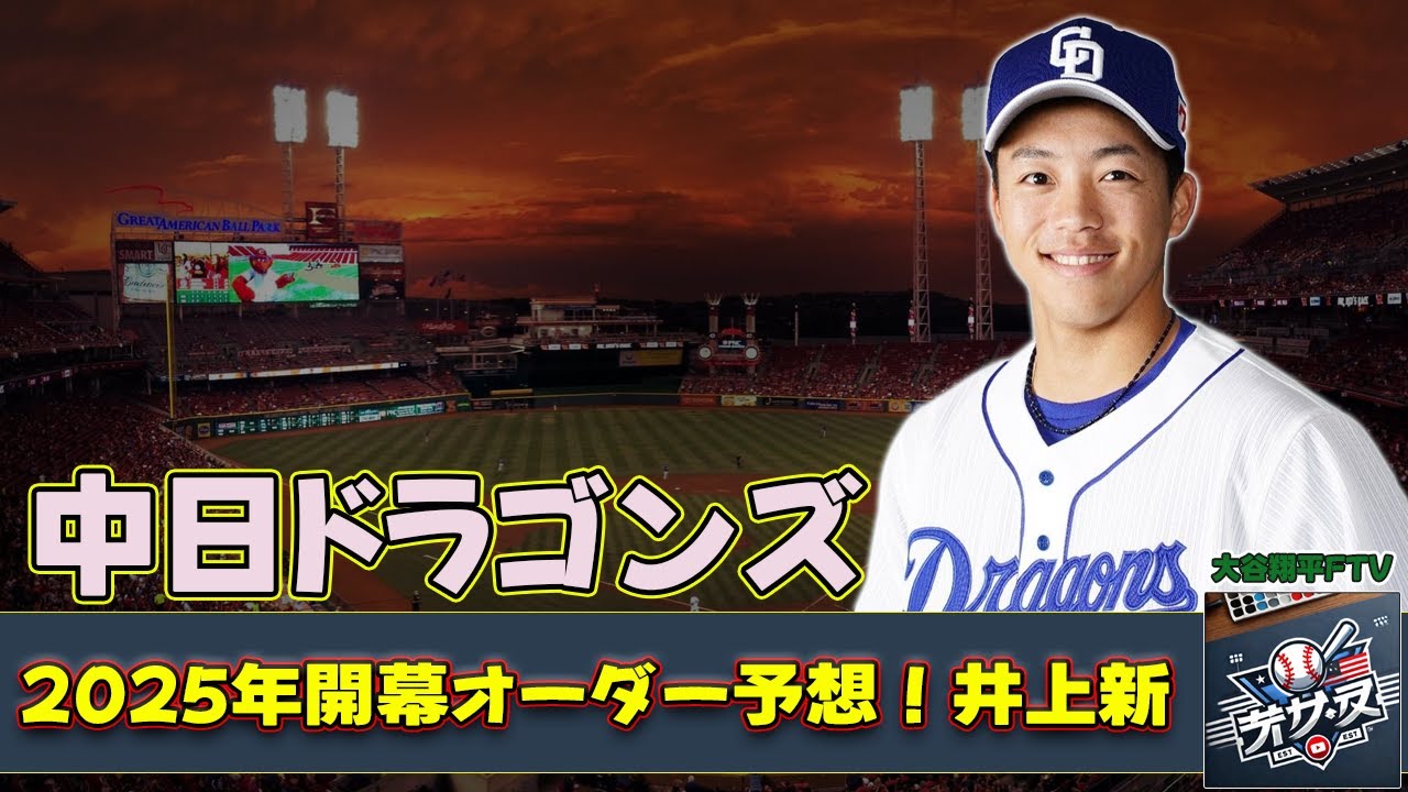 “#岡林,#福永,#細川,#中田,#石川, 「中日ドラゴンズ2025年開幕オーダー予想!井上新 皆さん、こんにちは!今日は、2025年のプロ野球シーズンに向けた中日ドラゴンズの開幕予想オーダーについてお話しします。新監督の井上一樹さんがどのようにチームを立て直していくのか、非常に楽しみですね。