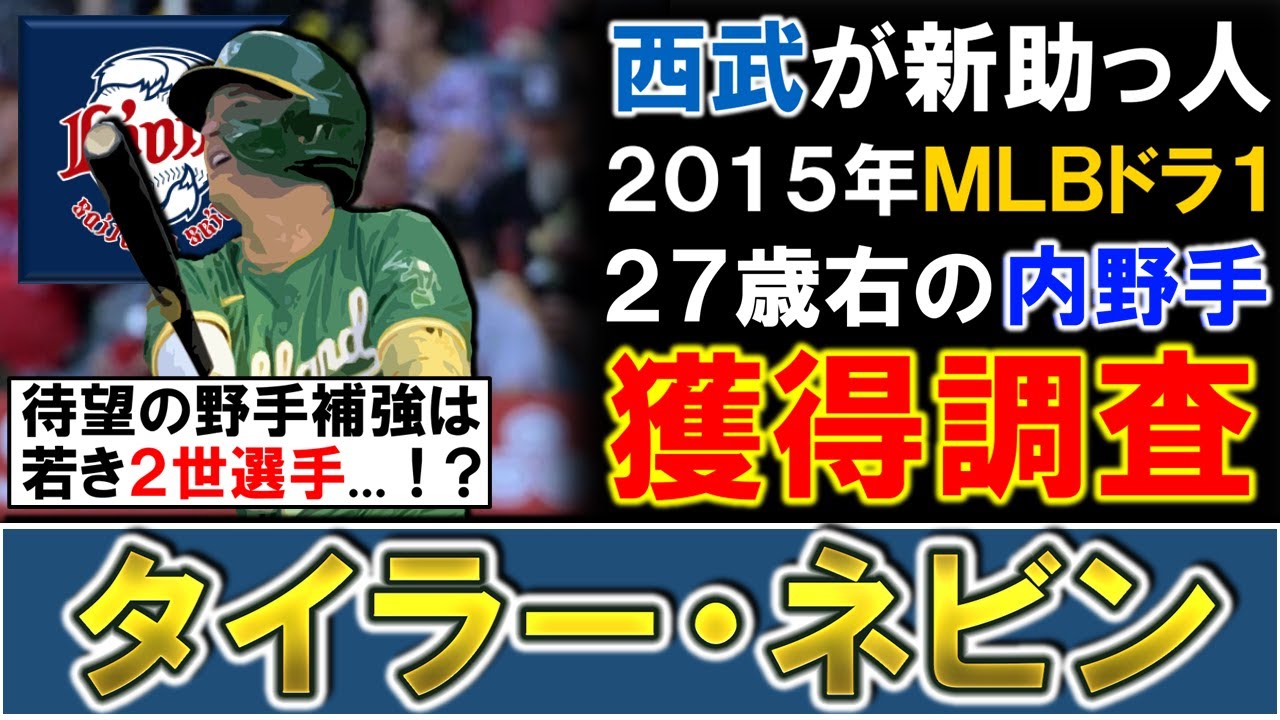 【ついに待望の野手補強へ…!】西武が新助っ人として『タイラー・ネビン』を獲得調査!2015年MLBドラフト1巡目指名の27歳右の内野手で昨季MLBで7HRを放った中距離砲がラストピースに!?