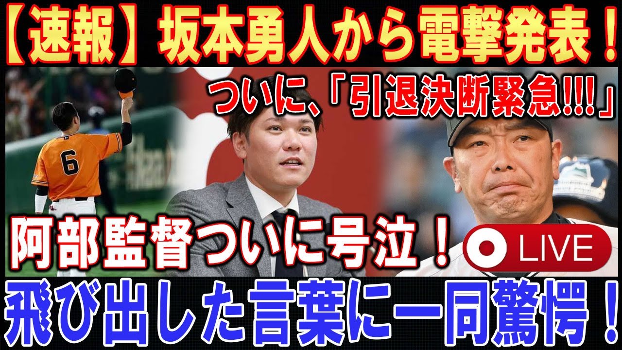 【LIVESTREAM】【世界激震】坂本勇人がら電撃発表 ! ! !ついに「引退決断緊急!!!」 . . .阿部監督ついに号泣 ! ! ! . . .飛び出した言葉に一同驚愕 ! ! !【速報】
