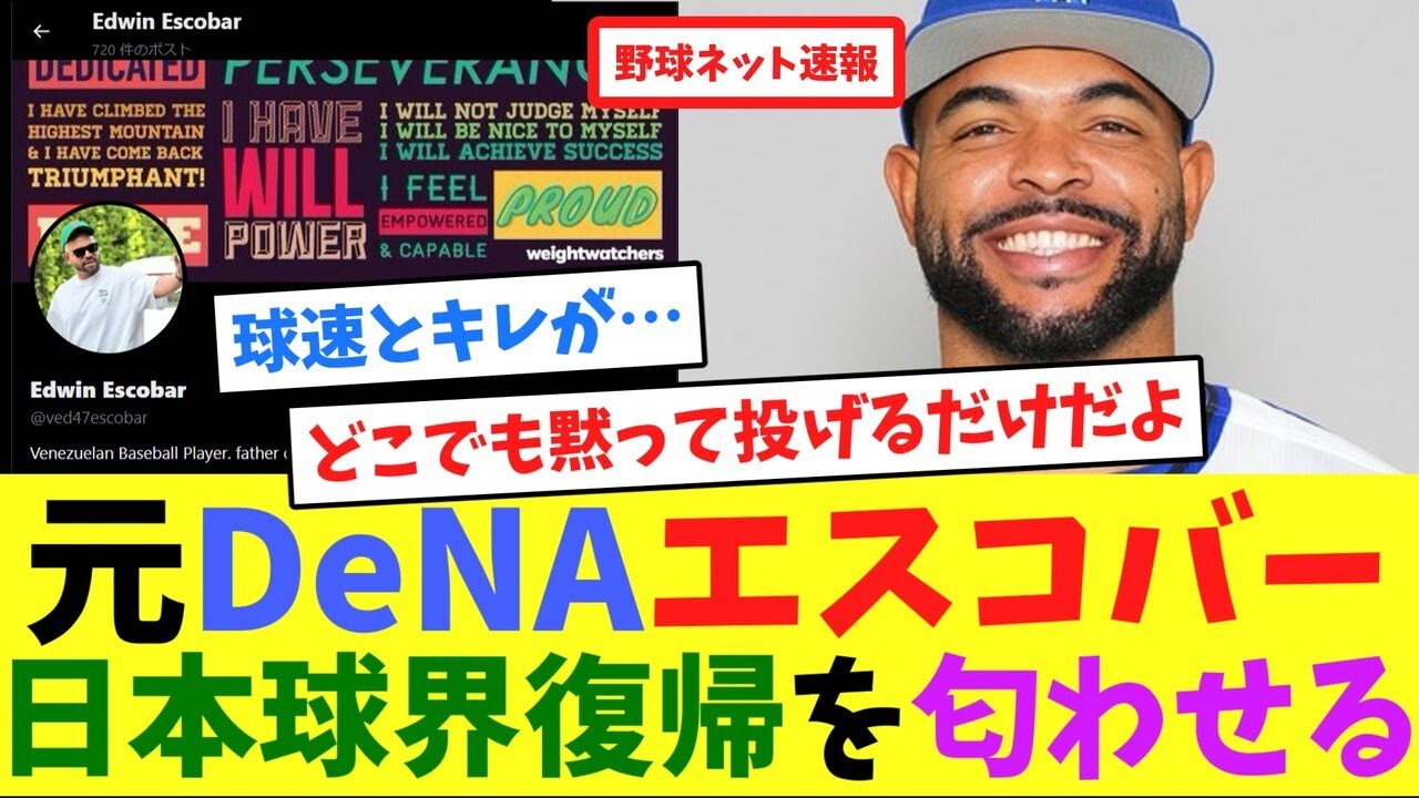 元DeNAエスコバー、日本球界復帰を匂わせる【ネット反応集】