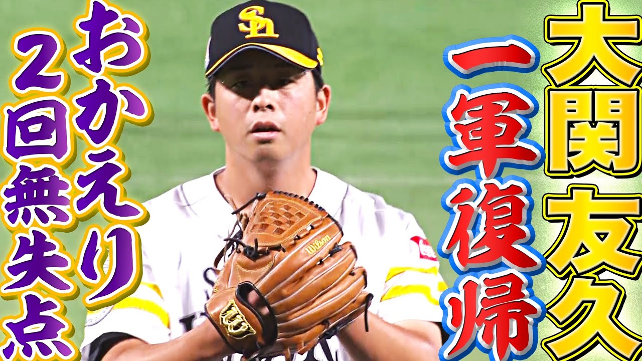 8月2日に左精巣の腫瘍摘出手術を受けた福岡ソフトバンク・大関友久が約2ヶ月ぶりに1軍マウンドへ上がると、2イニングを無失点に抑える好投を見せました。