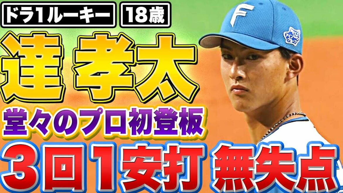 北海道日本ハムファイターズのドラ1右腕・達孝太がプロ初登板。初回、先頭をまずは1球で二ゴロに打ち取ると、四球で2人の走者を許しながらも無失点。2回に四球、3回に安打で走者を許しながらもいずれも無失点。素質の片鱗を感じさせる無失点投球で無事にデビュー戦を0で終えた!!