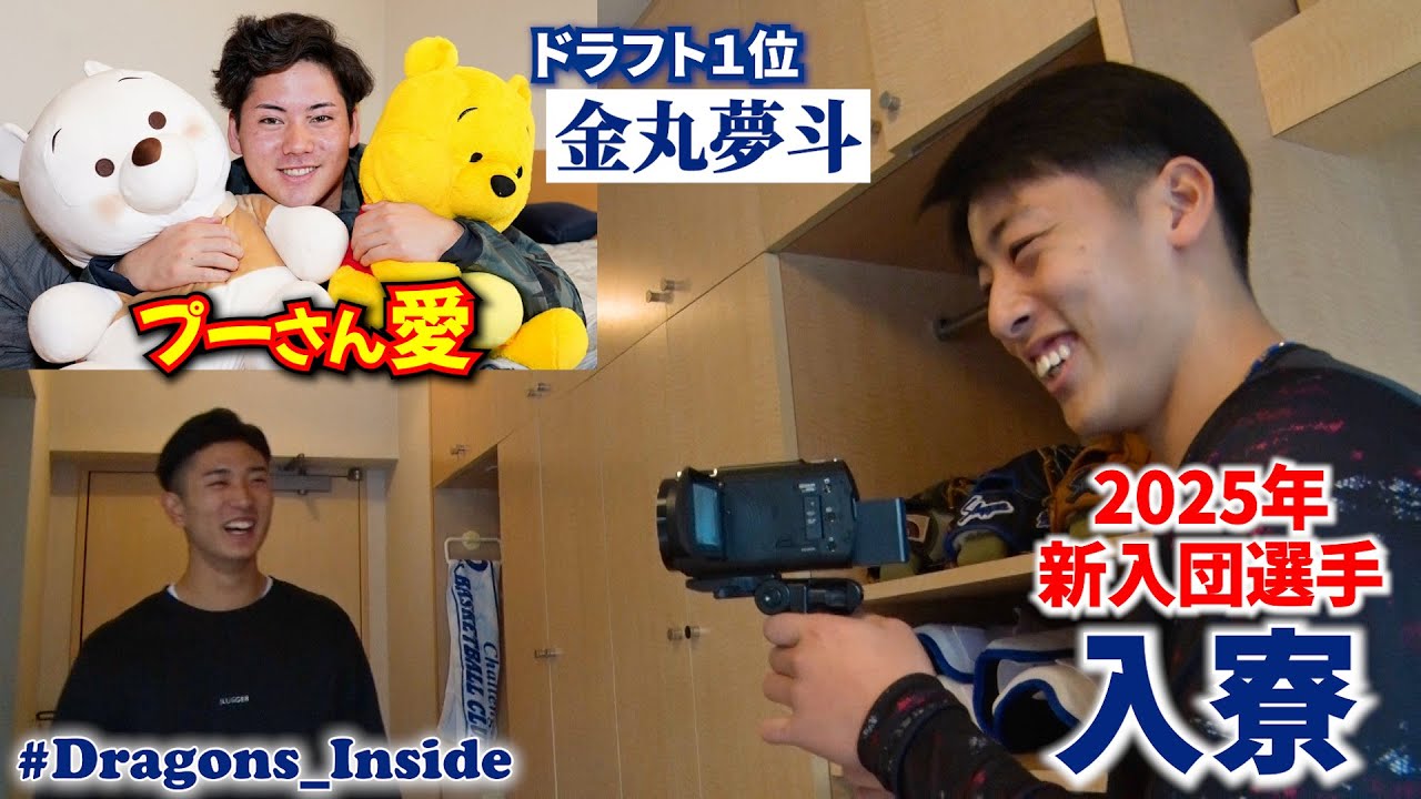 選手同士の撮影で素顔発覚⁉2025年新入団選手の入寮に潜入📹プーさん大好き #金丸夢斗 投手が同期に大号令…? #Dragons_Inside