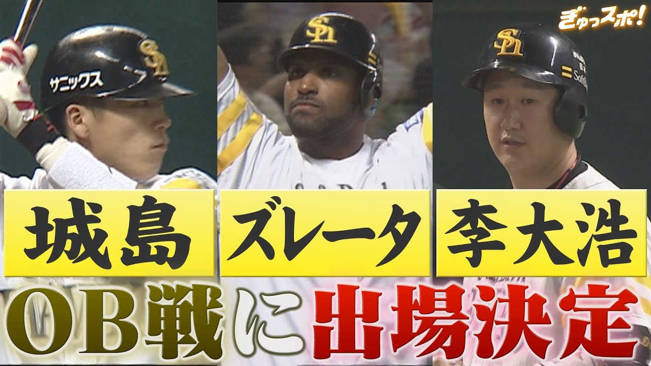 城島!ズレータ!李大浩!往年の名選手がOB戦に大集結!【ぎゅっスポ!ホークスこぼれ話】 3月に開催されるホークス初のOB戦。 ソフトバンクホークス誕生20周年を記念して行われるこのイベントに往年の名選手たちが大集結。 韓国の最強助っ人・李大浩に、パナマの怪物ズレータ、さらに釣り人城島健司。 豪華メンバーのOB戦は波乱の予感。 #ぎゅっスポ! #福岡ソフトバンクホークス #珍プレー好プレー #パシフィックリーグ #カイラ #シリスポ # (2025年1月10日放送。) #プロ野球Fukuoka SoftBank HawksKBCアサデスアスリートシリタカスポーツセ・リーグパ・リーグホークスももスポ九州朝日放送福岡福岡ソフトバンクホークス野球 NPBHUB.COM | The Fanbase of Nippon Baseball & Nippon Professional Baseball