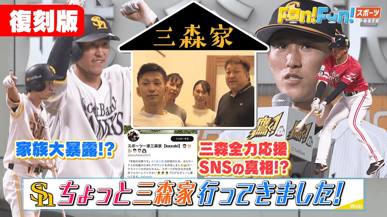 【復刻配信】EP13 ちょっと三森家行ってきました 〈2021年10月23日放送〉 来シーズンからDeNAでプレーする三森大貴選手。 その三森選手のお兄さんのSNSが話題ですよね! クセが強い!超絶面白い三森家の皆さんに会ってきました~! ※情報は放送当時のもののため、現在とは異なる部分があります #ホークス #ソフトパンクホークス #福岡ソフトバンクホークス #横浜denaベイスターズ #三森大貴 #tvq Fukuoka SoftBank Hawks三森大貴福岡ソフトバンクホークス NPBHUB.COM | The Fanbase of Nippon Baseball & Nippon Professional Baseball
