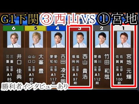 【G1下関競艇】大注目一騎打ち③西山貴浩VS①宮地元輝(1着選手のインタビューあり) 2025.1.12下関競艇開設70周年記念 GⅠ海響王決定戦2日目11R ①宮地元輝②竹田和哉③西山貴浩④吉田凌太朗⑤大峯豊⑥井口佳典 ORIX Buffaloesオリックス・バファローズ吉田凌 NPBHUB.COM | The Fanbase of Nippon Baseball & Nippon Professional Baseball